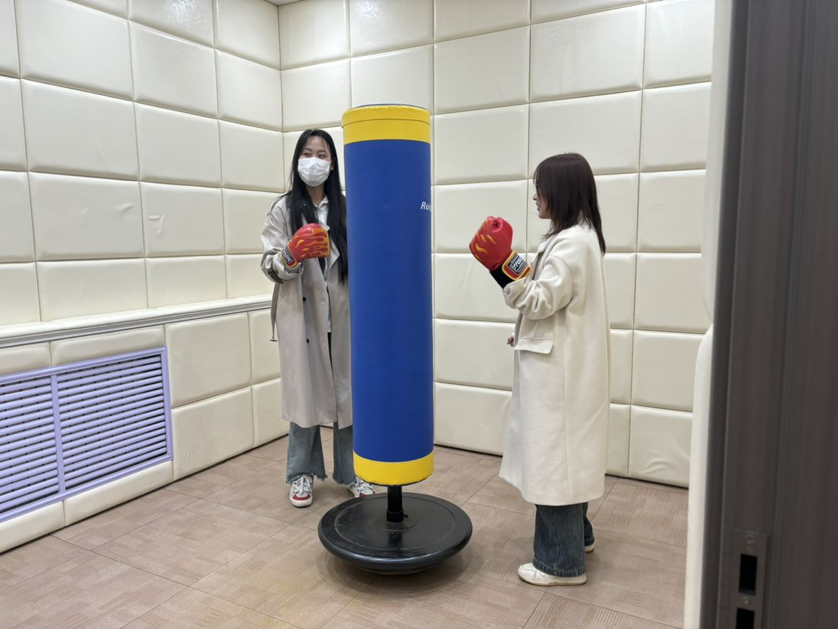 活动开始,同学们在中心志愿者的带领下,观看心理设备介绍短视频,了解心理健康知识和心理问题应对技巧。随后,同学们参观并体验团体辅导室、心理咨询室、VR放松室、心理宣泄室等功能室。来到心理功能室后,同学们戴上VR心理放松头盔“飞驰身心”、使用智能击打宣泄仪“痛击压力”、用心理沙盘打造“梦想人生”。活动中,志愿者详细讲解调节与宣泄不良情绪的实用方法,鼓励同学们用积极乐观的心态面对学习生活,合理释放压力,度过充实而有意义的校园生活。同学们纷纷表示:“通过心理设备体验,让自己更深入了解个人情绪、压力水平和应对方式,有利于促进自我心理认知和个人成长。”