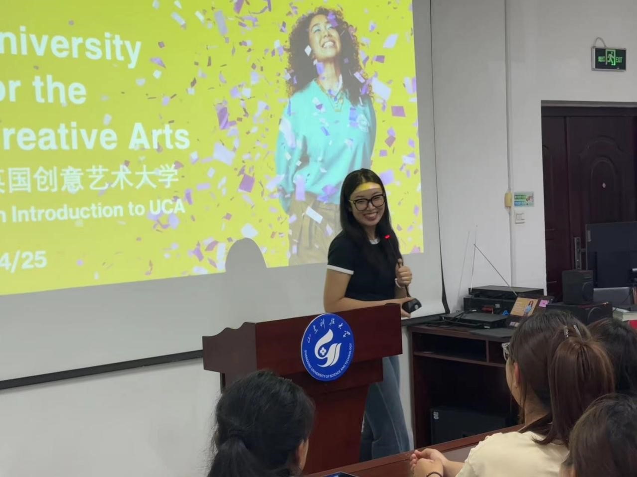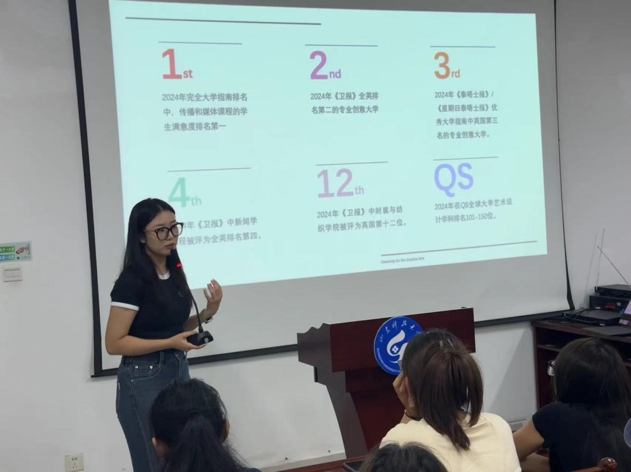 9月29日,申博sunbet为拓宽员工国际视野、提升专业技能与竞争力、熟悉海外高校申请规则、增强国际意识,于J9 - 425会议室开展了英国创意艺术大学(UCA)留学讲座活动。