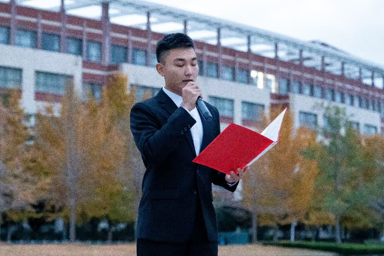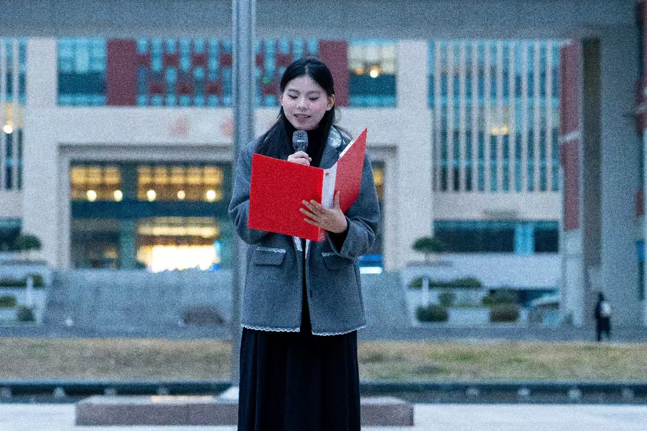 升旗结束后,由音乐学2024级江盛宇同学主持本次国旗下的爱国主义主题教育。视觉传达设计2023级史翘楚同学作为员工代表,为大家进行国家安全教育宣讲,他强调了国家安全教育的重要意义以及回答了作为员工应如何维护国家安全,展现了新时代青年的使命与担当。音乐学2022级庄舒涵同学进行爱国教育演讲,教育同学们树立正确价值观,明确自身责任,将个人成长与国家命运相连。仪式最后,由音乐学2024级杨天奇、潘政伊、姚祖琳、王兴娜同学带领大家合唱歌曲《我和我的祖国》,悠扬的歌声传达出艺术学子们对祖国深沉的爱。
