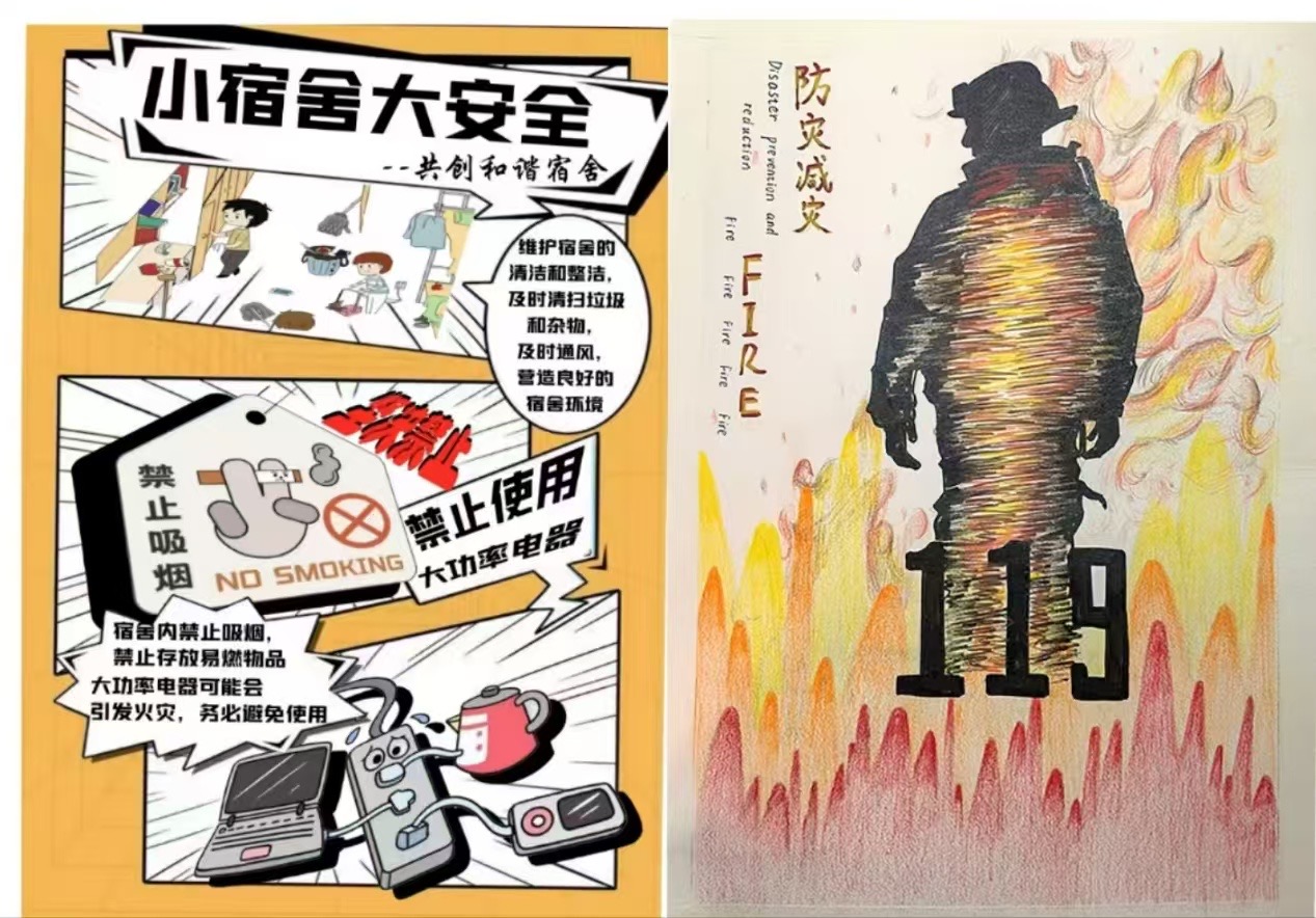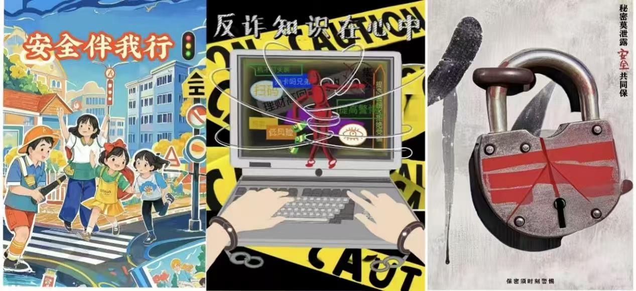 本次活动采取安全知识答题、海报创作等形式开展,向员工们以更加生动形象的方式宣传安全教育知识。活动共收取海报三十余张,其中,《防诈枷锁》以反电信诈骗为主题,采用了鲜明的视觉元素来传达其核心信息,配合各种与诈骗相关的词汇,具有很强的警示和教育意义;《小宿舍大安全》作品中列举了宿舍中的一些安全隐患并展示了一系列违禁电器,传达了宿舍安全的重要性;《防灾减灾》以消防员为主要画面,画面中消防员背影坚毅有力,背景火焰的颜色威严肃穆,从侧面告诫同学们应当重视消防安全问题。同学们纷纷表示以这种方式不仅学到了实用的安全知识,还锻炼了思维能力与应变能力,在互动中增强了安全意识。
