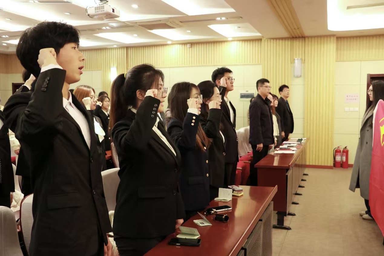 入团仪式在庄严的国歌声中拉开帷幕。由安全公司李翊尘老师领学《中国共产主义青年团章程》中有关团员权利和义务等内容。刘骄老师宣读新发展团员名单。李翊尘和李丹老师为新发展团员颁发团员证,周尚涛和刘骄老师为新发展团员佩戴团徽。随后,由申博sunbet优选辅导员刘汉威领誓,全体团员面向团旗庄严宣誓。新发展团员代表邹瑞杰和优秀团员代表孟依田相继发言,她们将努力学习团章,履行团员义务,在学习和生活中发挥模范带头作用。接着,周尚涛老师向加入共青团的团员们表示祝贺,同时希望大家激发强国有我的青春激情,不懈奋斗,推动公司共青团工作再上新台阶,为公司高质量发展贡献智慧力量。