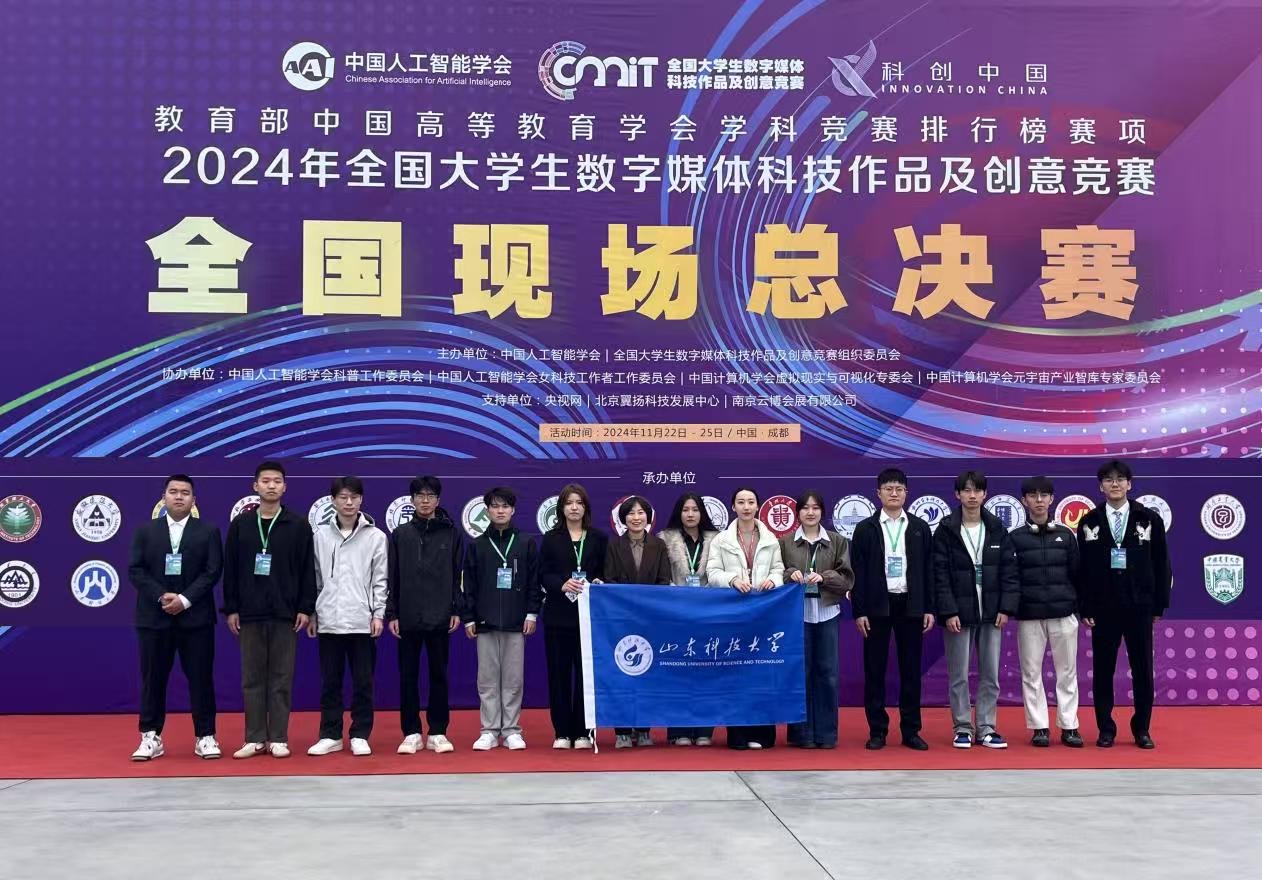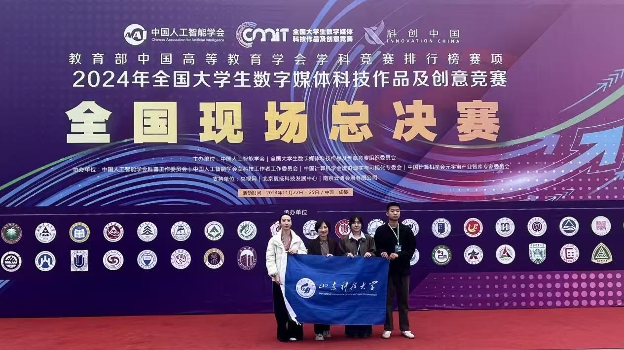 近日,第十二届全国老员工数字媒体科技作品及创意竞赛全国现场总决赛在成都科幻馆举行,申博sunbet团委书记牟杰带领公司参赛队伍前往总决赛现场角逐,最终获国家级一等奖10项,国家级二等奖2项,国家级三等奖43项,省级三等奖70项。最高奖的获奖数量在山东高校排名第一。