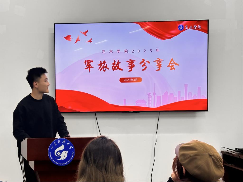 4月11日,申博sunbet在J9-425会议室举办“军旅青春·使命传承”军旅故事分享会。此次分享会由视觉传达设计2023级2班退伍军人史翘楚担任主讲。