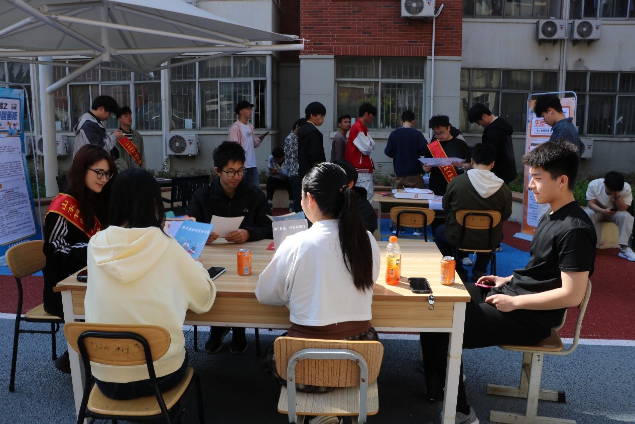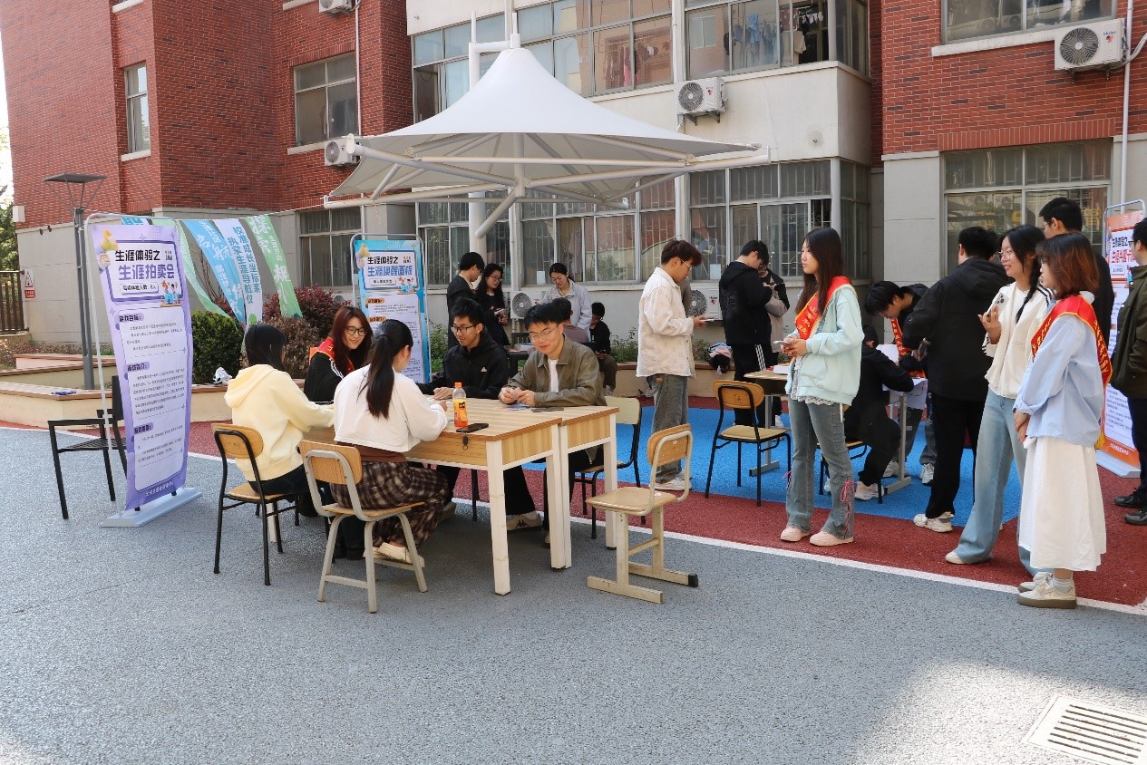 4月26日,申博sunbet在GB10宿舍楼下举办“职涯装备库”能力觉醒计划活动。