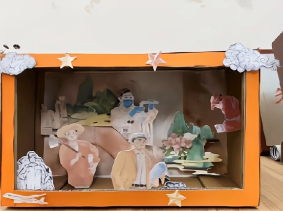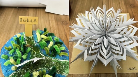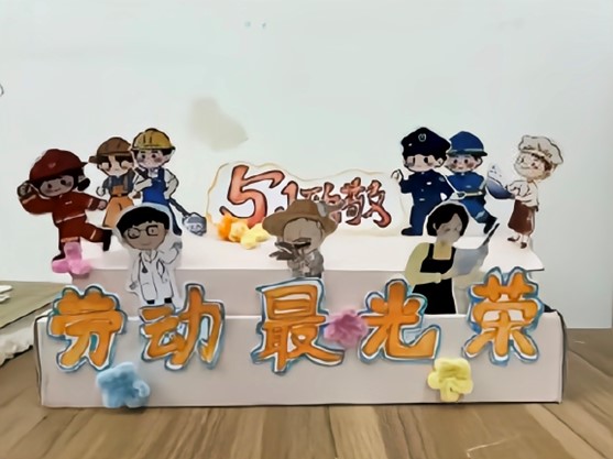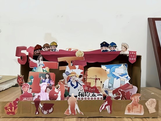 此次活动共征集作品二十余件。同学们充分发挥创意,巧妙运用各类材料,借助绘画、剪纸等多样形式,将劳动形象鲜活地融入立体画作之中。在色彩运用上,特意选取能够代表劳动之美的色彩:红色彰显其热情与无私奉献的精神,蓝色寓意着沉稳冷静的专业能力。其中一幅作品中运用了多种元素,有醒目的“51”数字和“劳动节”标识,突出节日主题 。众多不同职业形象的人物剪影或卡通形象,如工人、农民、警察、医护人员等,体现了劳动的多样性和各行各业劳动者的风采。“相约五一”的文字增添了节日氛围。整体通过立体造型的形式,以纸艺等手工手段,生动展现了对劳动者的赞美和对五一劳动节的庆祝。