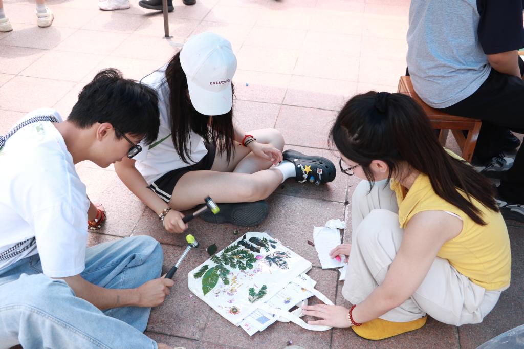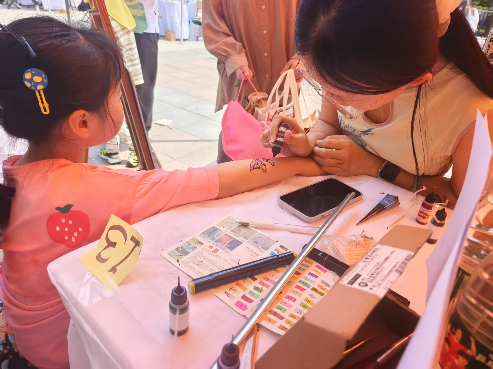 6月8日的尤洛卡广场上,申博sunbet“惟真·尚美”老员工艺术节活动之艺术市集全程火爆,八十多个摊位百余名艺术员工在这里扎堆摆摊,开始了创业初体验,解密艺术生创业路上的财富密码。艺术市集涵盖非遗体验、文创设计、互动创作等多个区域,步入非遗体验区,鱼拓将生命的永恒凝固在宣纸上,蓝染与柿染讲述着植物与布匹的古老情话,蚕丝扇摇动着千年桑蚕文明的微风;市集另一隅,员工原创设计的明信片、书签、帆布包,巧妙融入了校园标志元素或地方文化符号,让实用之物承载着独属于山科的艺术印记;互动创作区域始终洋溢着欢声笑语,人物画像捕捉着模特最本真的神韵,海娜彩绘在身体上绘出斑斓花朵、雕琢美丽,漆扇将色彩搭配发挥的淋漓尽致。