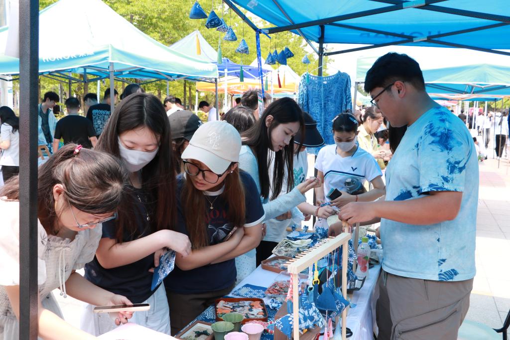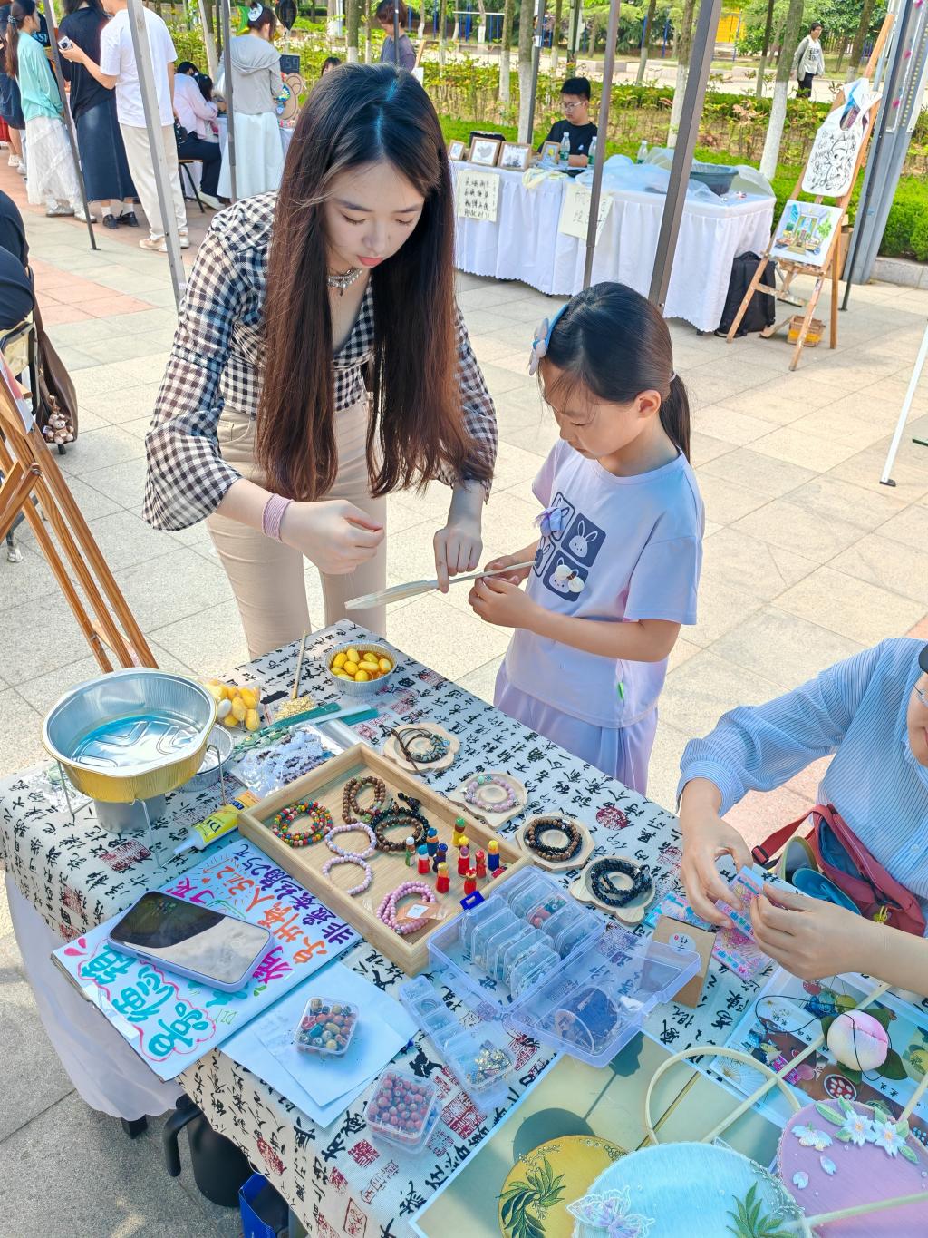 “今天我的扎染作品好多人喜欢,一共卖了39单,赚了1821元”,“我的海纳手绘,一共赚了1446元,去掉颜料费用,我也日入千元,”在艺术市集结束的时候,参加市集的申博sunbet员工欣喜的交流着当天的收获,感叹着艺术生在创业的路上,完全可以重选赛道、另辟蹊径。一位带着孩子逛市集的老师欣喜地表示:“孩子在每个摊位都会逗留很久,对每个体验活动都很感兴趣,购买的东西包里都装不下了。”