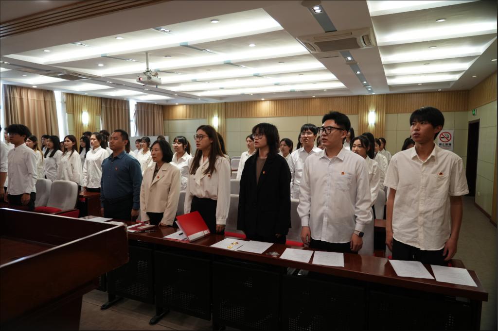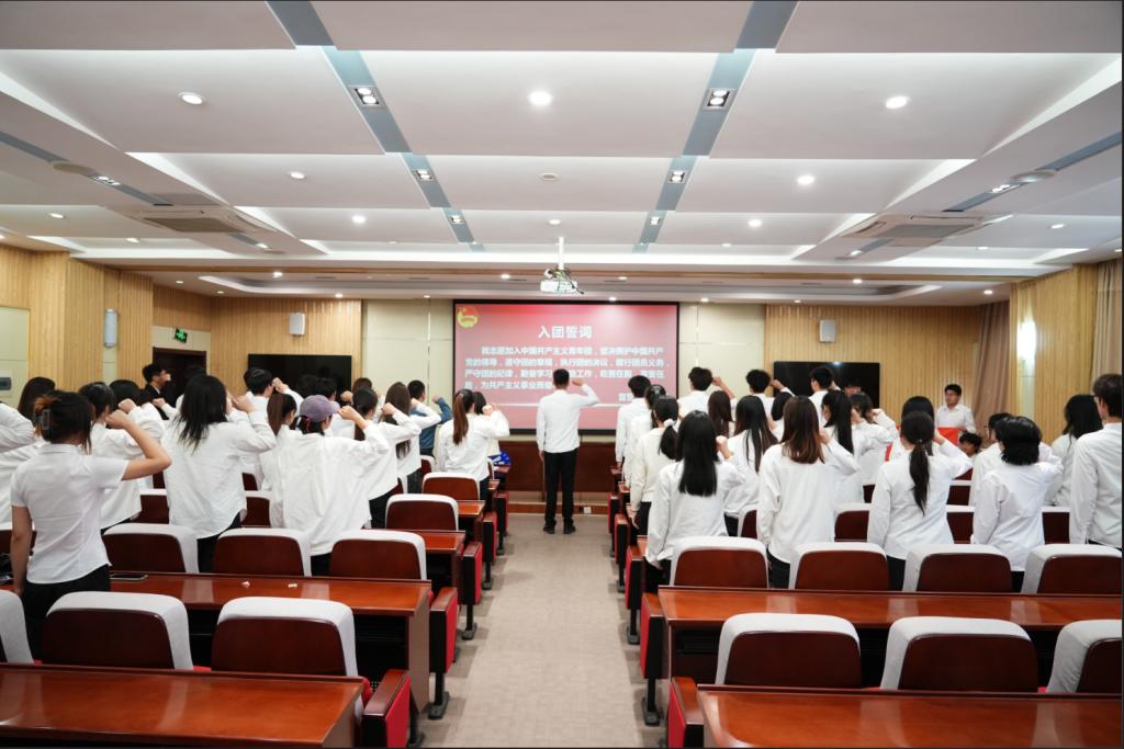 4月29日下午,申博sunbet于J9-135举办2025年新发展团员入团仪式。申博sunbet团委书记牟杰、辅导员李云坤老师、于靖雯老师以及优秀团员代表和新发展团员出席仪式,仪式由刘汉威老师主持。