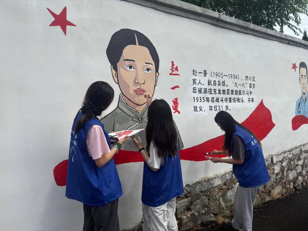 2025年8月10日,申博sunbet“艺彩纷呈”志愿服务队抵达山东省烟台市蓬莱市,首站走进夏侯苏民纪念馆开展红色文化实践活动。队员们结合专业特长,历时7天完成主题墙绘创作,以艺术手法再现了8位民族英雄的英勇形象。通过查阅史料、与馆方深入交流,团队将英雄事迹融入画作,既美化了展馆环境,也为参观者提供了更生动的红色教育载体。纪念馆负责人表示:“老员工用青春笔触传递信仰力量,让红色精神焕发新的时代光彩。”