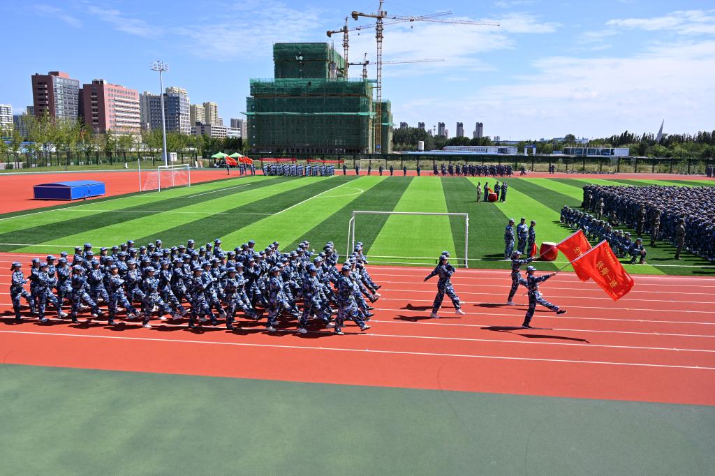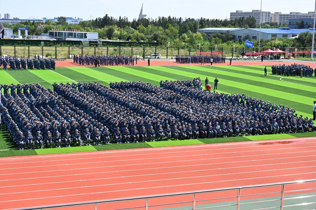 9月17日,科创园区训练场上口号响亮、步伐整齐,2025级新生以昂扬的斗志迎来新一天的军事化训练。