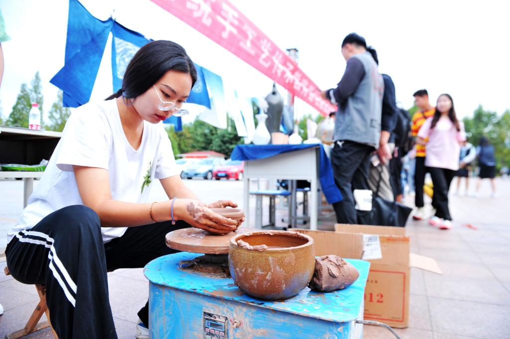 活动集中展示了扎染、皮艺、木艺、刺绣、陶艺、大漆等传统手工艺作品及制作工艺,吸引了众多同学前来观看体验。扎染的旖丽,皮艺的柔软,木艺的质朴,刺绣的细腻,陶艺的雅致,大漆的清绮,无一不展示出中国传统手工艺的艺术魅力。此次展演通过bilibili直播粉丝上万人、新华社后期播报浏览量上百万人,通过活动的成功开展,加强了校园美育建设,推动了岛城文化繁荣,弘扬了中国传统文化,促进了传统文化的传播与普及。