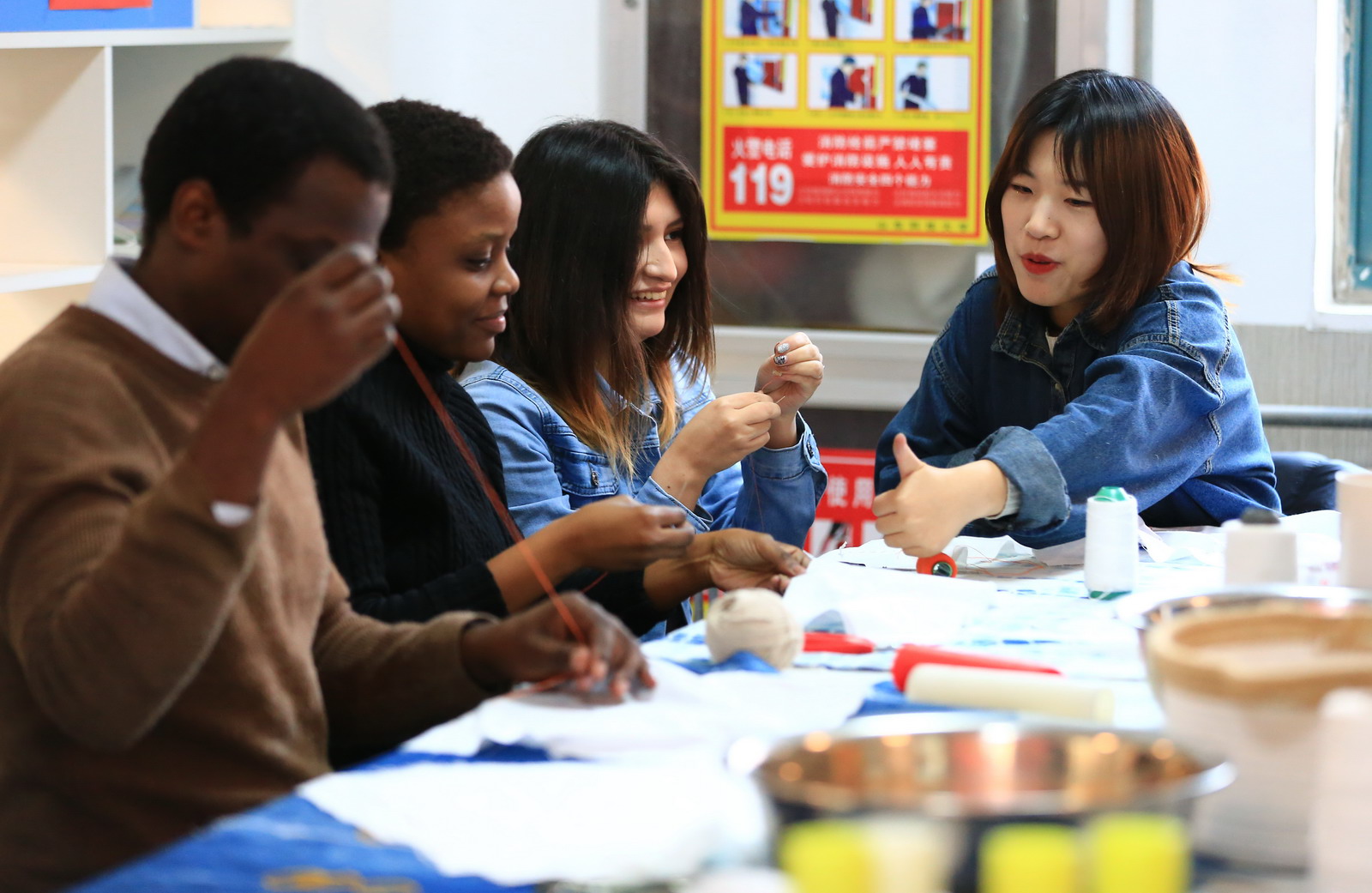 为迎接即将到来的校庆,以传统文化搭建中外学子之间的桥梁,12月10日,由研究生工作部、国际交流公司、申博sunbet主办的“聚中外学子 显文化自信”迎校庆中华传统手工艺美育活动月在GA19-21职工活动室精彩开展。三个单位的负责人均来到现场参加了美育活动月的启动仪式。山东省中华优秀传统文化传承基地的员工们在申博sunbet宋玉凤老师的带领下,和中外研究生一起开展了第一场以“扎染”为主题的文化交流。