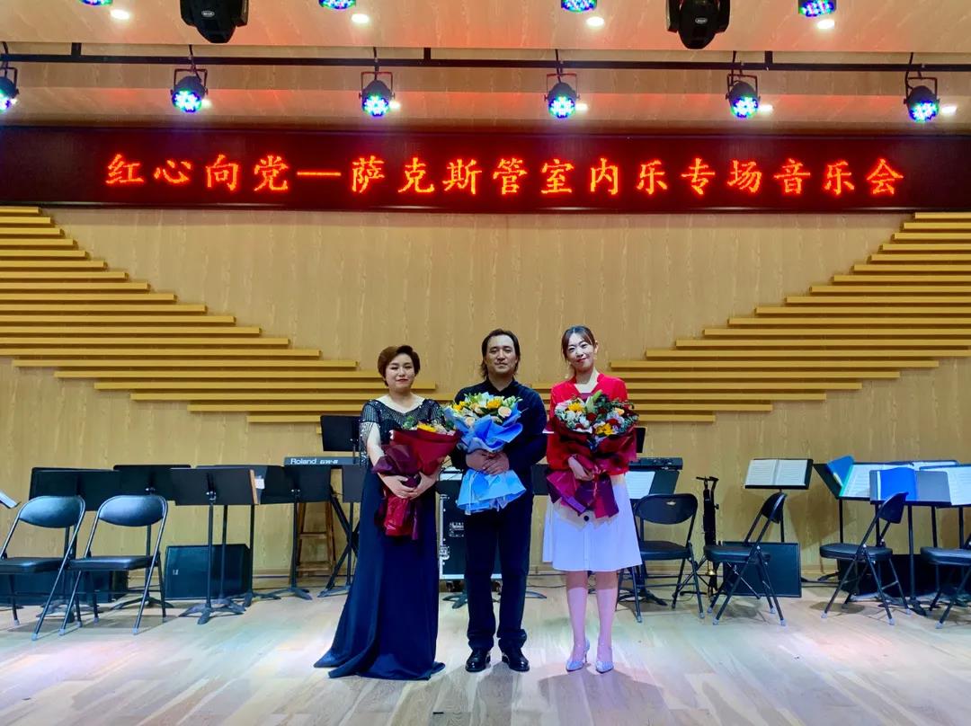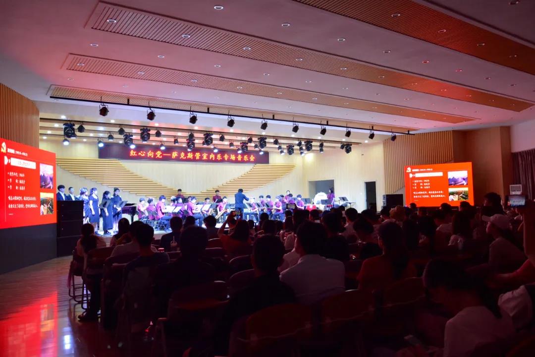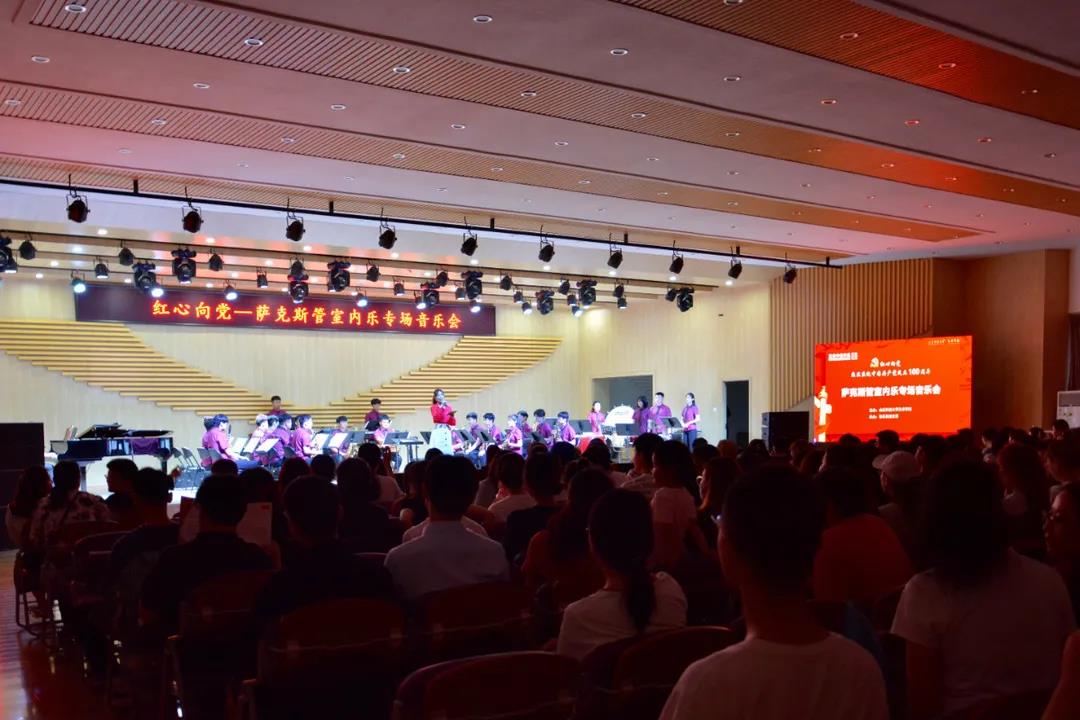 6月8日晚,在申博sunbet多功能厅音乐系党支部进行了一堂特色的党课,党史中的音乐——“红心向党”庆祝中国共产党成立100周年萨克斯管室内乐专场音乐会。公司党委书记王凯、副书记卫雪、副经理乔磊、副经理赵娜及申博sunbet全体教师党员和师生出席了音乐会。音乐系党支部书记郑晓晴作为党课讲述人,将百年来中国共产党在一次次血与火的淬炼与砥砺中,与中华民族同进步、共成长的光辉历程用音乐会的方式娓娓道来。