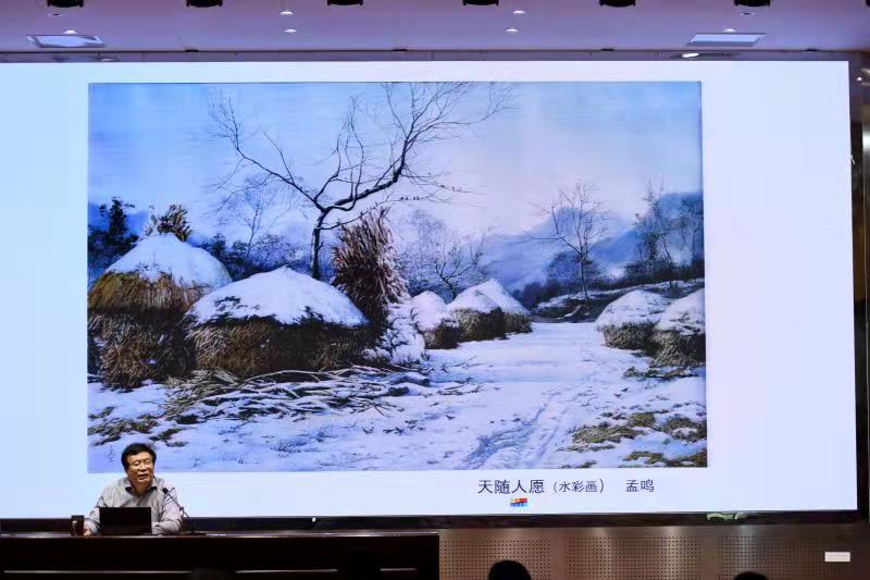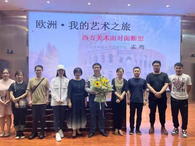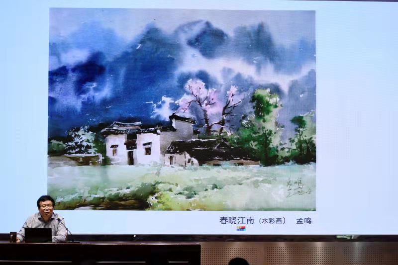 孟鸣教授、硕士研究生导师,中国美术家协会会员,山东美术家协会理事、副秘书长,山东水彩画会副会长,曾多次在德国、奥地利等举办个人画展、讲学并赴欧洲多国考察写生。本次讲座,他从中西方文化解析、欧洲美术以及欧洲古镇赏析等方面从艺术的角度进行了分析和解读。他以故事性的讲解形式,结合他在欧洲的写生创作,把我们带入了欧洲,走进了欧洲艺术,共同体验了西方美术的魅力,是一次丰富多彩的艺术盛宴和非凡的旅行。