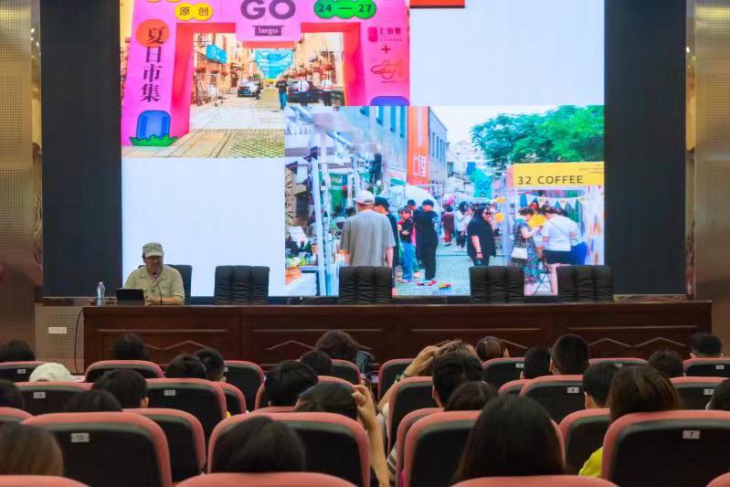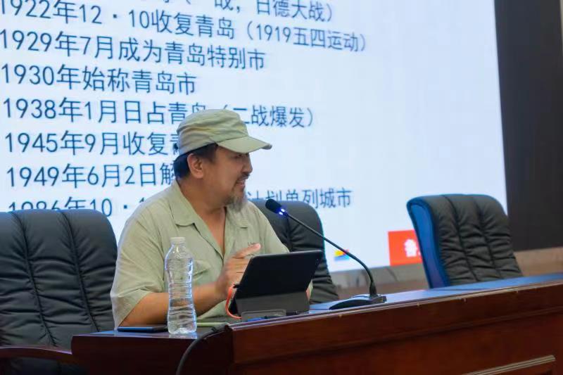 在讲座上,鲁汉会长从四个部分进行讲解,第一部分介绍了传统手艺在新媒体平台下的发展、传播和应用;第二部分通过青岛历史演变以及青岛城市历史风貌建筑的发展,引出了独特历史建筑“里院”的保存现状;第三部分列举了青岛现有关于传统工艺博物馆的基本情况;第四部分则以丰富的图文例子向大家展示了各类传统符号的吉祥寓意,“有图必有意,有意必吉祥”。四个部分内容的授课既形象又生动,让同学们更加全面的了解了各类青岛传统工艺和发展,为同学们对传统工艺的研究提供了方向。