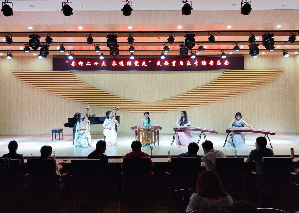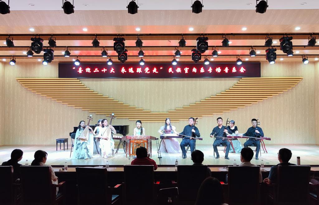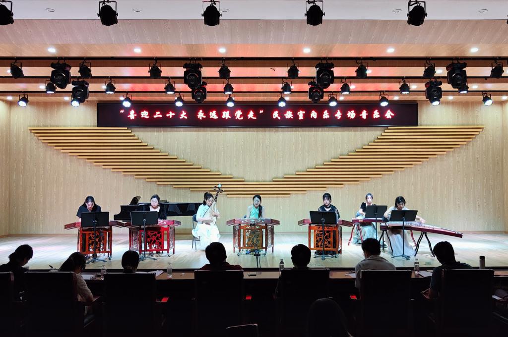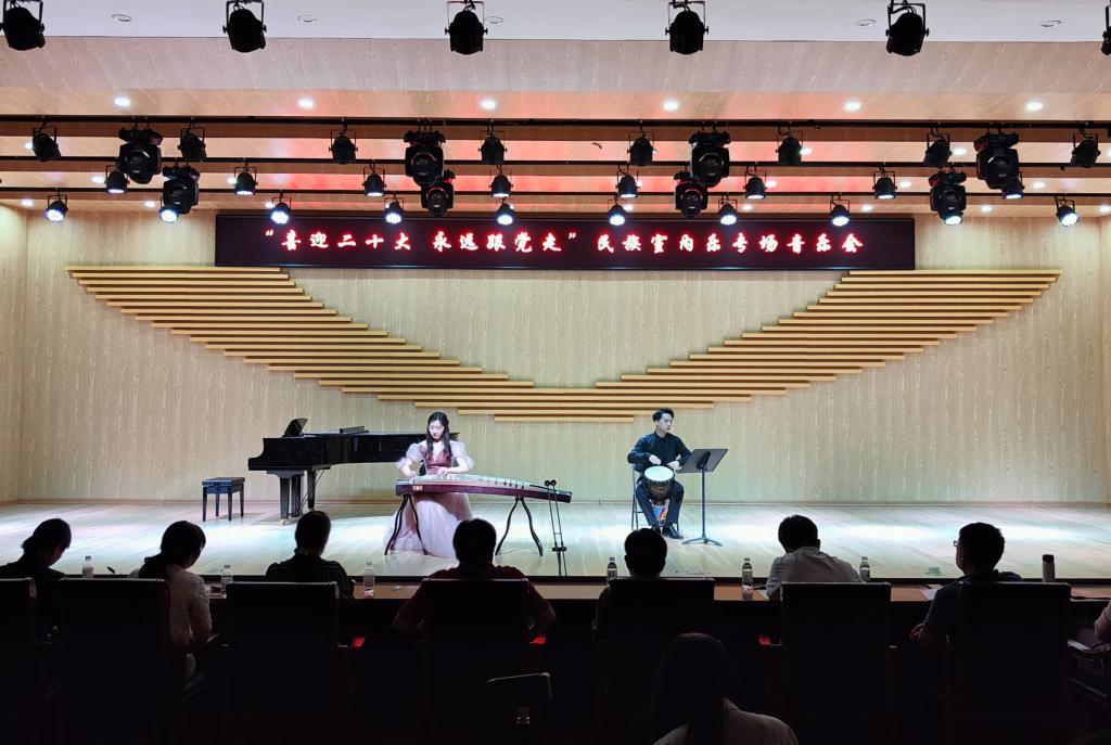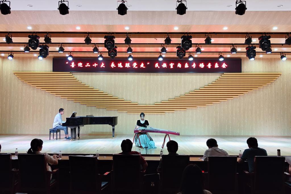 5月28日19:30,由申博sunbet主办、音乐系承办的“喜迎二十大 永远跟党走”民族室内乐专场音乐会于申博sunbet多功能厅成功举行。数学公司和申博sunbet部分师生观看了此次演出,各部门领导、公司领导班子出席了本次音乐会。