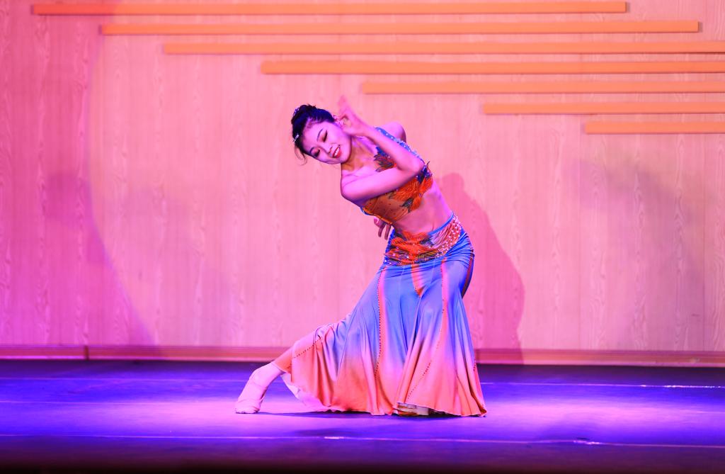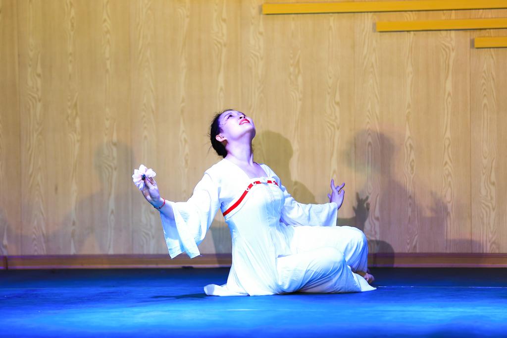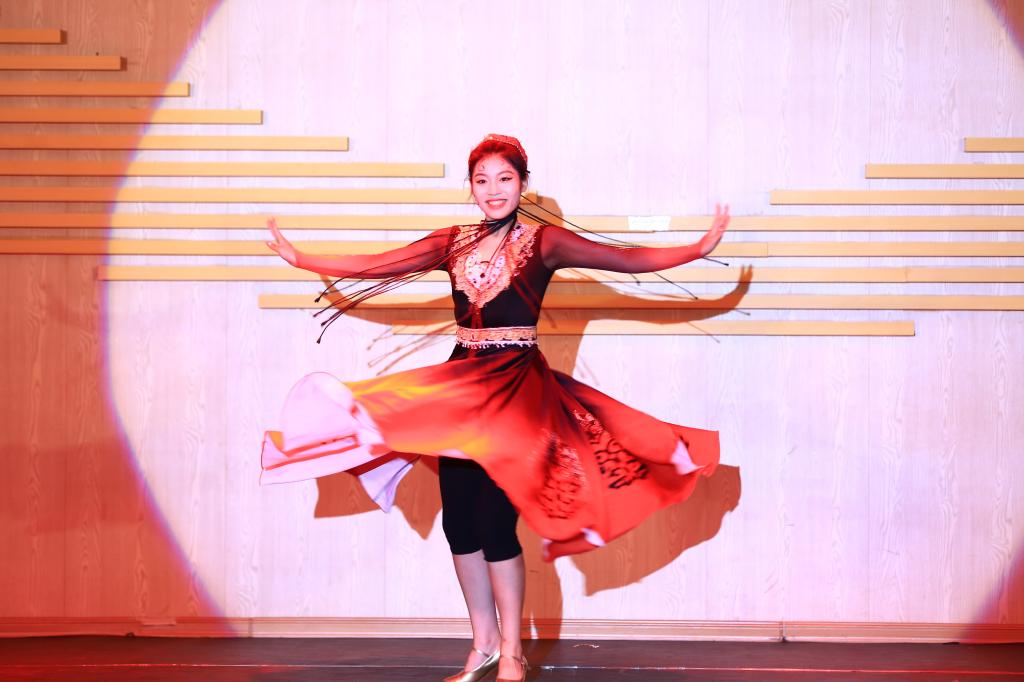 舞蹈晚会由张金英副教授10名毕业生共同演出,涵盖了各种风格、各种形式的节目:有表达对心上人的爱恋和对世间美好赞美的舞蹈《念去去》、《长相思》、《人世间》、《渔光曲》、《媚》、《如愿》;有展现独特民族风情的民族舞《阿杰鲁》、《彩云之南》、《阿伽鼓》;有展现革命前辈对理想信念的坚守和捍卫,对祖国和人民的深情祝愿的舞蹈《唱支山歌给党听》;还有丰富动人的串场节目:女声独唱《哈巴涅拉舞曲》、《领航》、笛子独奏《跑旱船》等。员工们精彩的演出博得了在场师生的阵阵掌声。