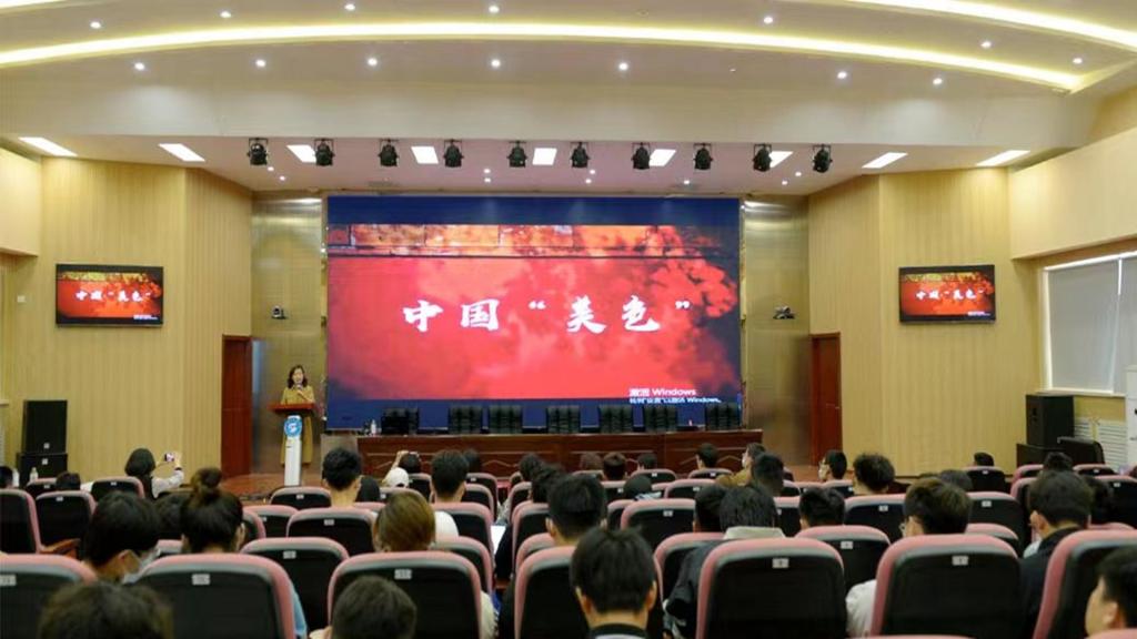 主讲杨梅经理,教授,硕士生导师,山东省本科公司产品设计类专业教育指导委员会委员、山东省专业学位研究生教育指导委员会委员。作为申博sunbet美育教育中心主任,组织开展了大量美育课程教学、平台建设等相关工作,促进五育融合,打造公司美育特色品牌。杨梅经理结合自己多年的创新经验,详细讲解了“五色观”色彩理论、色彩的基本知识、中国五行五色学说,并将色彩系统在衣食住行用方面的应用一一分析说明,精准的专业解读,同时配以大量的色彩图片范例,帮助我们打开了色彩的大门,让我们深切地感受到中国色彩的魅力。