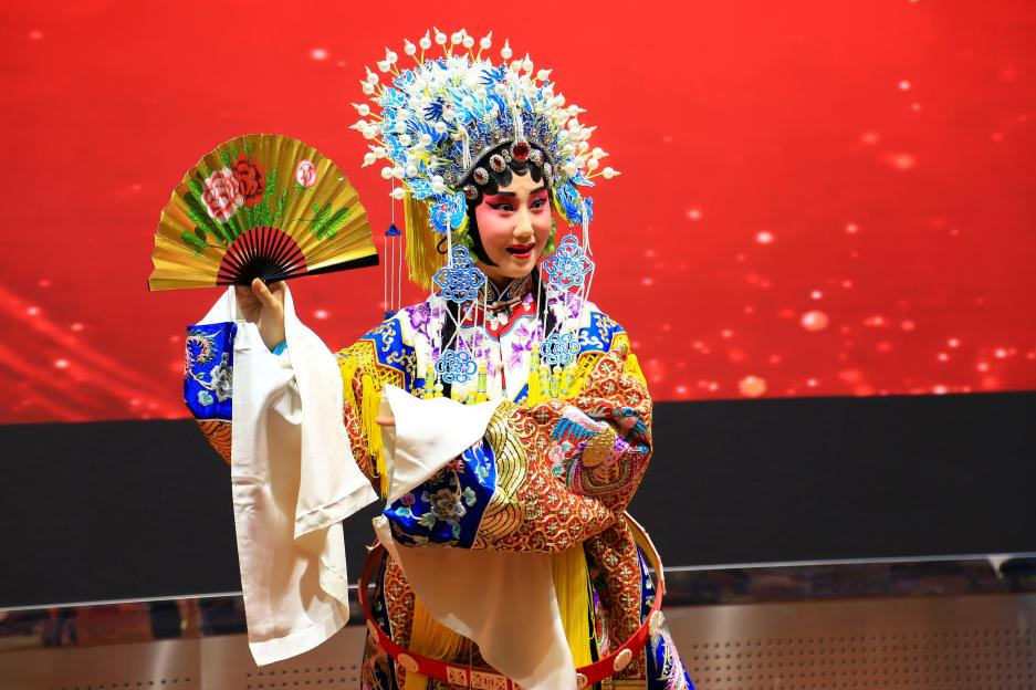 接下来通过唱段的现场演出,培养了师生对京剧文化的兴趣和热情,其中,梅派青衣《穆桂英挂帅》让在座师生雄心振奋,激昂的唱段让我们真切感受到了自古名女多书香,战场拼杀有几将!演唱者的英姿也体现了华夏江山定,神舟多女杰。穆桂英是中国通俗文学中巾帼英雄的典范。