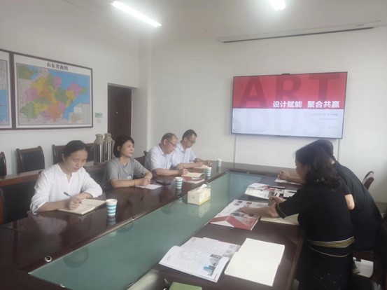9月12日上午青岛澳西智能科技有限公司庄美霞董事长一行四人来公司洽谈合作交流,申博sunbet经理杨梅、经理助理李雪瑞、工业设计系主任贾乐宾等参加座谈。