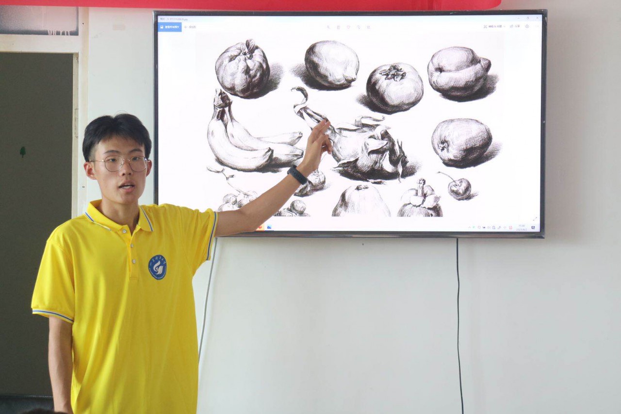 传统艺术的体验是对老艺术的传承,而素描是现代艺术的基础。素描课上,提笔在纸上勾勒,几何体在小朋友们的描绘下渐渐成形,心中对美术的认知也更加清晰。随后的“艺术展览”与前期“艺术体验”相结合,让小朋友们感受、欣赏艺术,更完整地了解艺术。团队与来自中国海洋大学的实践团队以支教为纽带,促进了两校之间的交流。最终,艺术实践在这片充满生机的地方圆满结束,精彩有趣的课程得到了家长及孩子的一致好评。