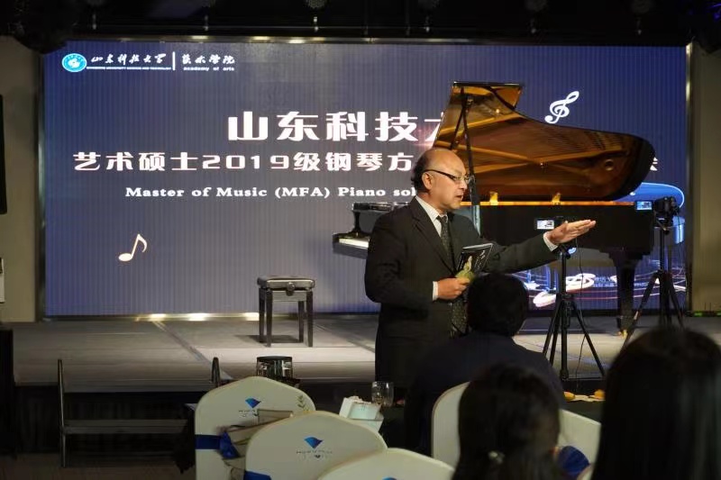 用音乐聆听智慧,用艺术感悟人生。4月27日上午,申博sunbet音乐系主办的2019级艺术硕士(MFA)钢琴独奏中期汇报音乐会在青岛市正一琴行举行,申博sunbet硕士生导师姜薇、董梅、孟晓、曲艺和特聘教授于少华参加了此次活动。