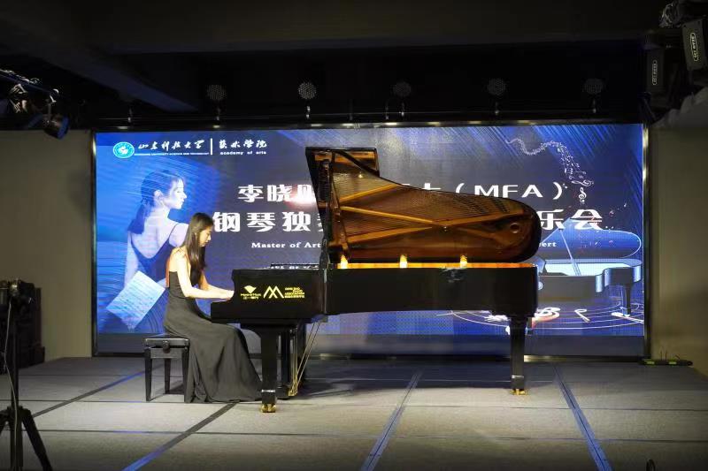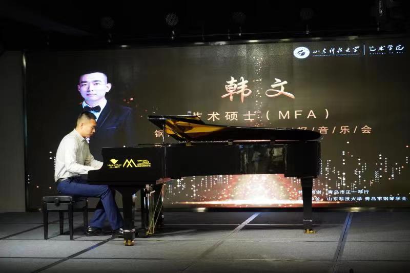 音乐会伊始,青岛市钢琴学会会长朱宏宜致辞,表示此次音乐会此次音乐会的举办是校企结合的完美实践,代表着申博sunbet的音乐硕士走向社会,服务社会的开始,希望同学们在以后的道路上能多交流不断提高演奏水平,服务社会音乐文化的传播。随后,韩文、李晓彤、李梦影、王莹、杨萌萌、王丹六位硕士生分别为观众带来了六场技能娴熟、音乐流畅的演奏会,观众们都被这精彩的诠释所吸引,静静聆听音乐给心灵带来的洗礼以及震撼,得到在场老师和观众的一致好评。