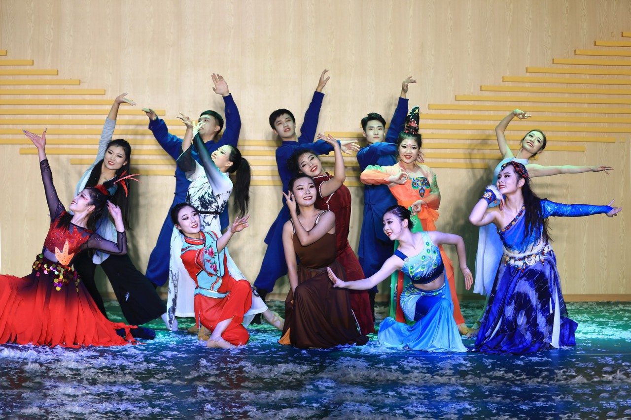 舞蹈之海滚滚沸腾,全体参演人员踏歌而来,在《身韵技巧》舞蹈中拉开序幕;以火样的热情,展现自信的风采,民族舞、古典舞、现代舞等轮番上演。《西域之火》用身韵技巧展示新疆风情,展示拯救人类命运的希望与光明;舞蹈《我等你》用婉约优美的舞姿,凄清冷艳的表情,演绎了军嫂们在等待丈夫回家的场面;“如梦如幻月,若即若离花”十二少与如花的爱恋,一支《胭脂扣》跳出了时空交错、缠绵悱恻的情爱纠葛。《少年》、《存在》、《单车》则向我们展示了当代青年肩负起祖国的使命,用青春高歌的梦想与企盼。整场晚会氛围高涨,精彩纷呈,为广大师生带来视觉与听觉的双重享受,使观众们沉浸在舞蹈与乐曲编织的海洋中,异彩纷呈的节目展现了学子积极向上的精神风貌和多姿多彩的艺术文化氛围。